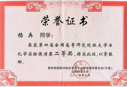 第四届全国高等师范院校老员工化学实验二等奖——杨兵